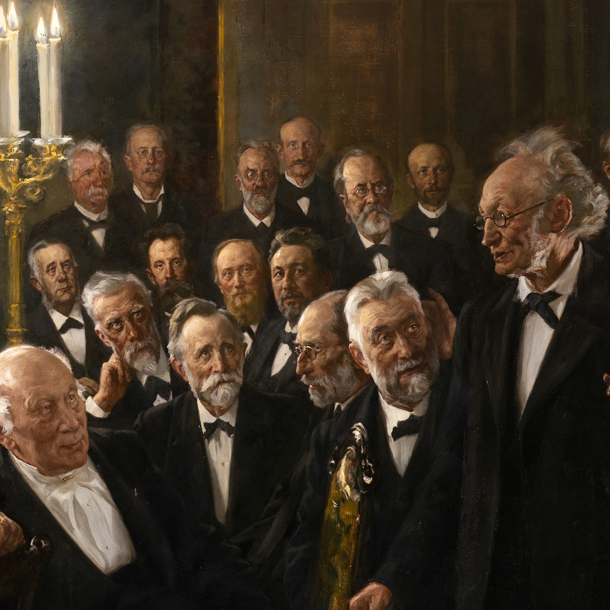 The Royal Danish Academy of Sciences and Letters was created for the purpose of strengthening the position of science in Denmark. This painting contains a type of densely concentrated intelligence that you generally cannot see otherwise. Our society does not produce such environments anymore, so this painting creates a rare atmosphere of aristocratic intelligence.