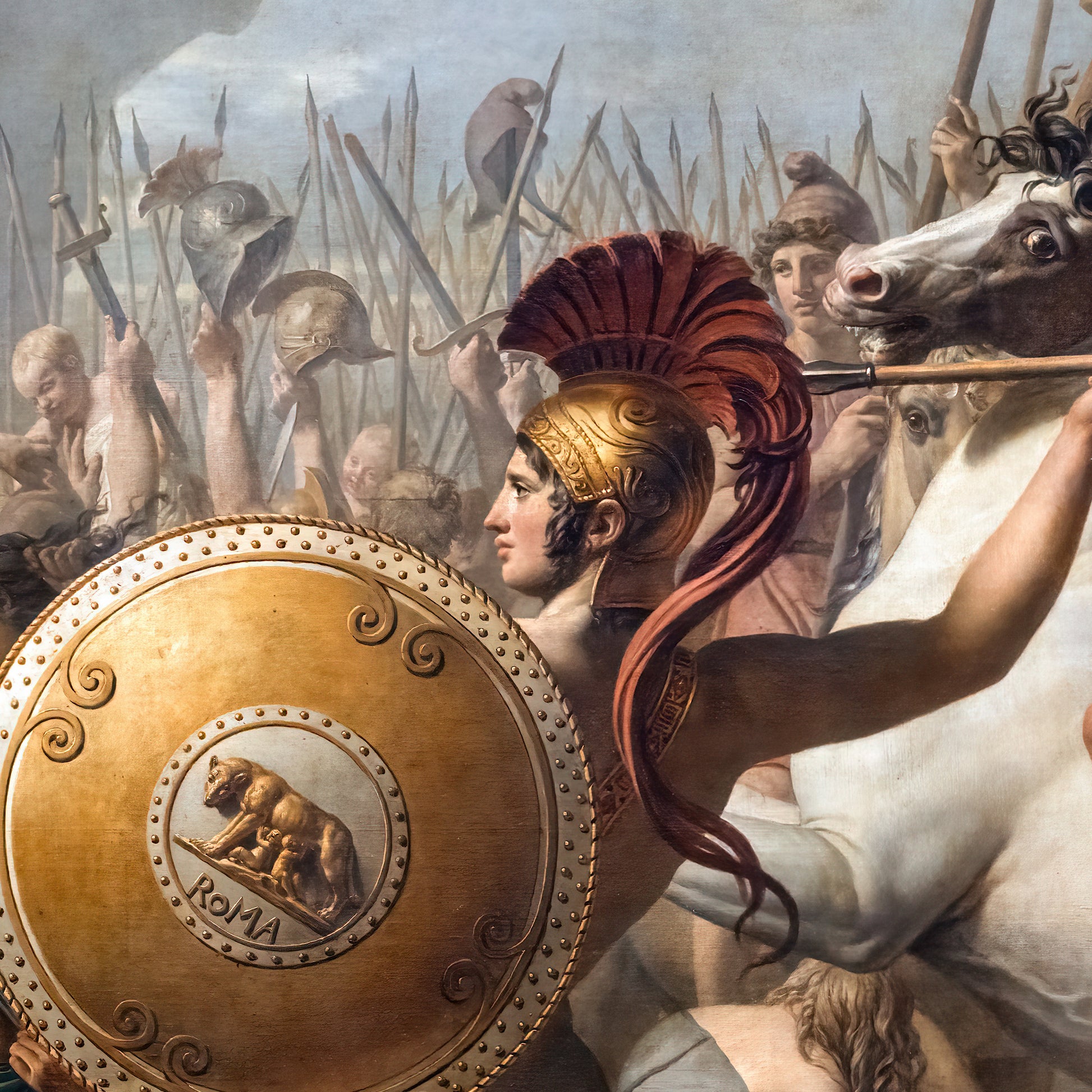 This event happened shortly after the founding of Rome, around 750 BC. Here is the story: The Romans needed more sons but they didn't have enough women to make wives of, so they abducted the Sabine women to take as wives. The Sabine men had a problem with this, and that's the origin of the conflict here, between the Roman and Sabine men. The Sabine women don't like the fighting so they rushed into the middle of the battle, pleading that the men stop fighting. The Sabine men agreed to unite with the Romans.