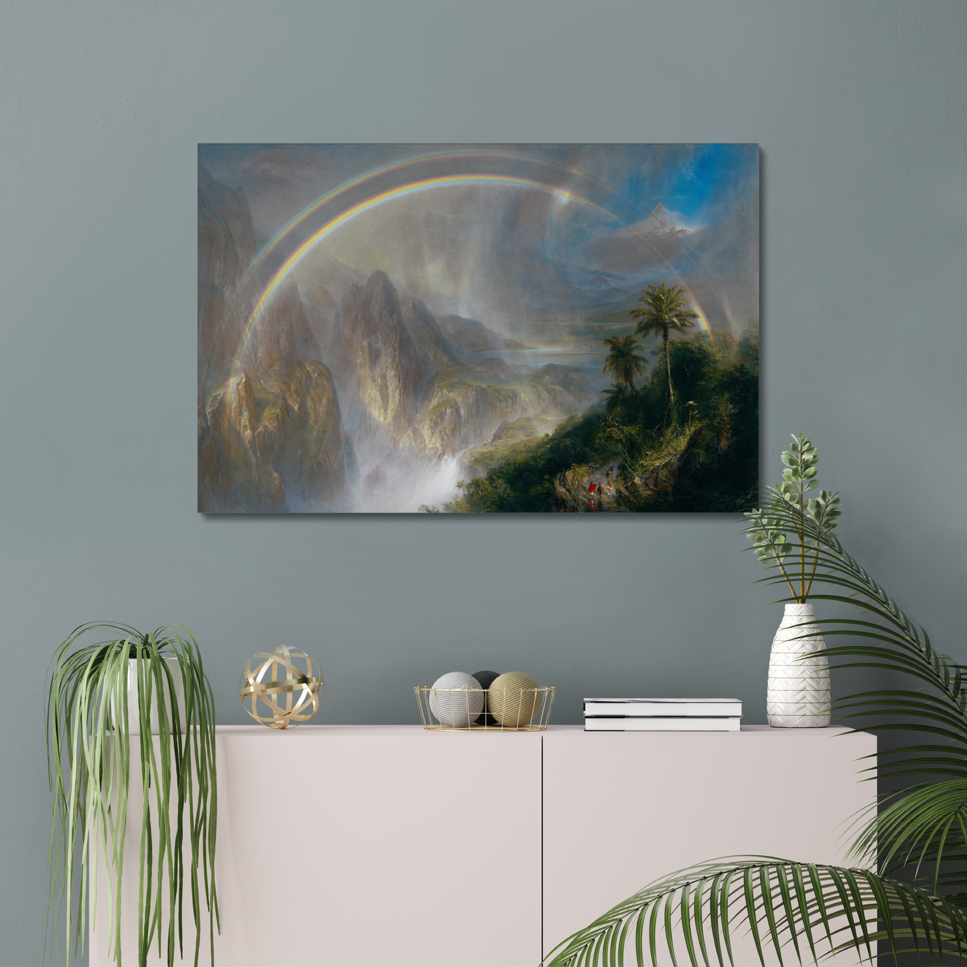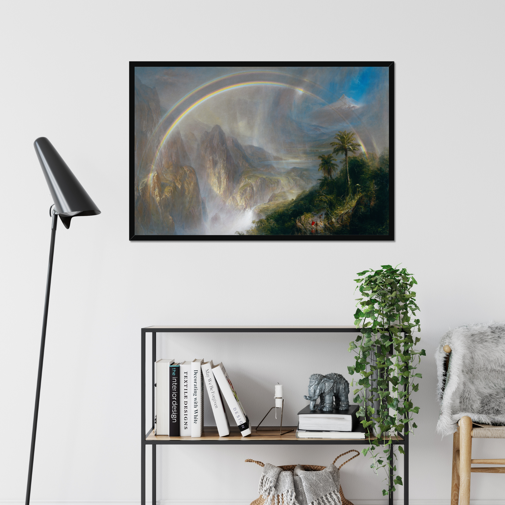 In the tropics there is more vitality in the environment, due to its proximity to the equator. The tropics have more life. It is a more dense and abundant ecosystem. The rainy season is a culmination of this, when flourishing is at its peak. Here the rainbow is a visual representation of that. That is the energy that this painting inspires. There is also a sense of freshness, hope, and renewal.